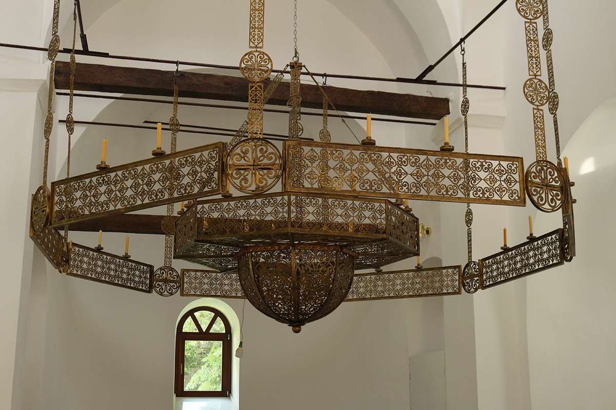 The renovation continues because now the frescoes are following, but the church is capable of living. The nuns try to organize their everyday life in addition to the renovation, so that they have their own products, rosaries, icons. They try to take everything that nature gives them and not to enter the race with the industry, they produce brandy and fruit syrups. Everything is organic, fruits and vegetables are watered exclusively with spring water and are made according to the simplest and oldest recipes known to them. Now they have the famous cream from Gavez, a balm, which turned out to be good and they make a balm from Nevena. Their glycerin soaps (medical) are well-known, as well as homemade lard (laundry) soaps. They do everything themselves, by hand and most importantly, everything is done with prayer and blessing, so that it gives a special quality. The basement room in the konak was turned into a chapel, a chapel, because the church was in scaffolding so it could not serve. This smaller one still remains in service today as a winter church for weddings, baptisms… The monastery has great wealth, fragments of relics. They have 65 particles of Russian saints and frequent relics of the apostles Andrew, Philip Nestor, Saint Demetrius, John the Baptist. Recently, with the blessing of the Bishop, they received a part of the relics of Saint Nectarios of Aegina. They also have a replica of the Jerusalem icon of the Mother of God, which arrived directly from Jerusalem with a small stone from the tomb of the Mother of God. At the time when she lived and was buried, there were no photographs, so the apostle Luke drew it at the place where she was buried, and it is an icon that is considered the most authentic. How the apostle Luke lived with the Mother of God, he knew personally, is considered the most credible. It is decorated with 300 zircons and 23 semi-precious stones, and is 1×1.40 m in size. The liturgy is served on Saturdays, Sundays and holidays. In the monastery there are places for lodgings and longer stays. The porch can accommodate 140 people and have lunch. These are the smallest monasteries in this series of monasteries located nearby.